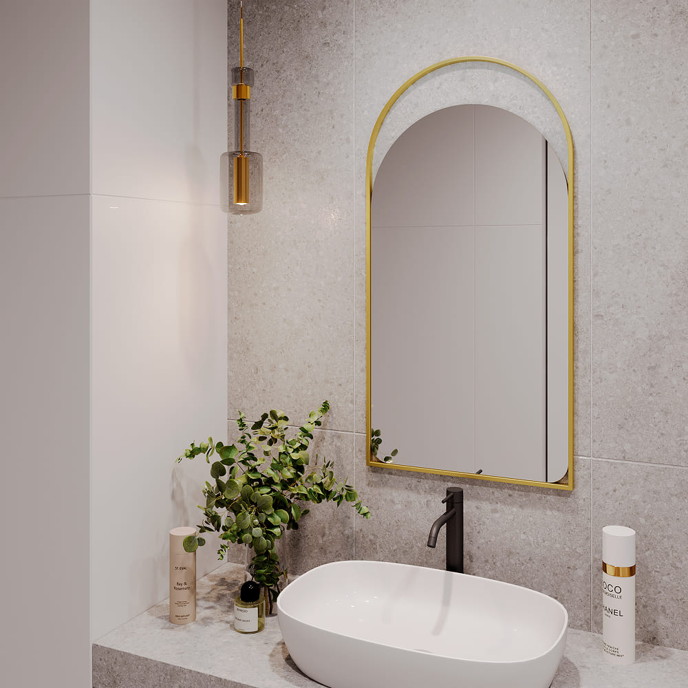 Современное арочное зеркало будет прекрасно смотреться в любом интерьере – как в домашнем, так и в коммерческом или общественном. Благодаря качественному металлу с влагостойкой порошковой окраской рамное зеркало подходит для помещений с высокой влажностью.