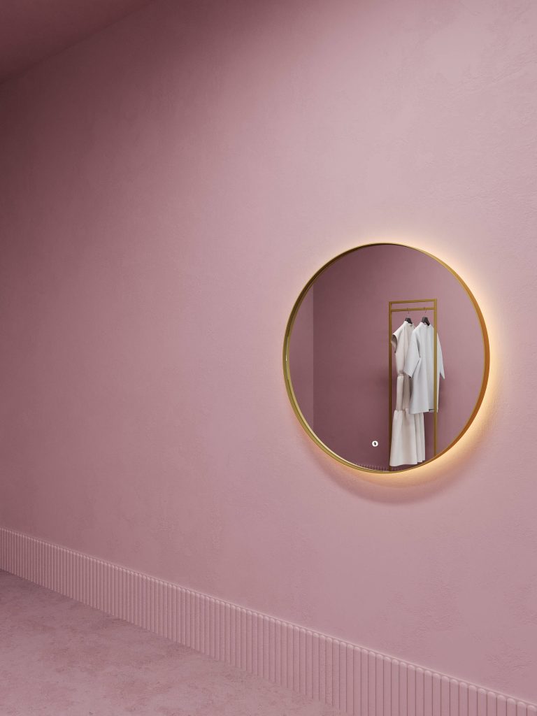 Круглое зеркало RAUNTEL M в тонкой металлической раме, с контурной (тыльной) подсветкой ручной работы – изящное и стильное решение для вашего интерьера. Рама имеет элегантный выступ 1.5 cм перед зеркалом, создавая привлекательный эффект углубления. Габаритный диаметр зеркала составляет 80 см.
