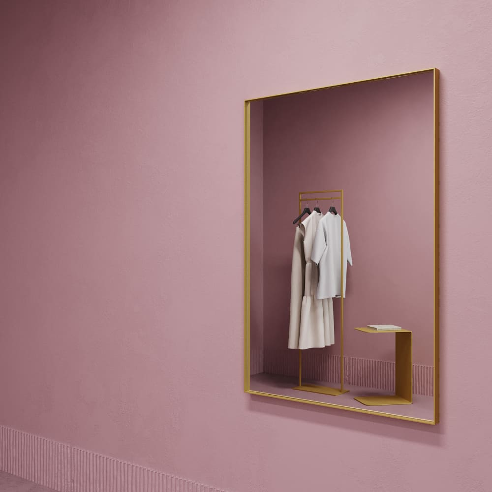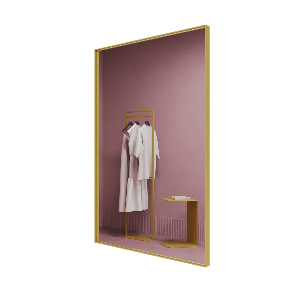 Большое прямоугольное зеркало HALFEO в тонкой металлической раме ручной работы. Зеркало в полный рост может быть как настенным, так и напольным. Производится как стандартно в тонкой раме 0.4*4 см с выступом рамы 1.5 см, так и в толстой раме 2*2 см. На тыльной стороне рамы присутствуют отверстия для монтажа на стену. Также зеркало можно просто облокотить об стену и поставить его под удобным углом наклона.