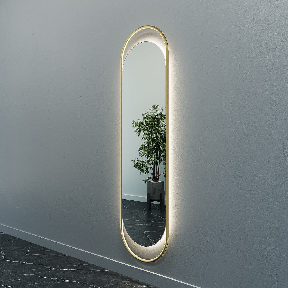 Зеркало в золотой раме с нейтральной подсветкой, EVELIX L LED, 178 х 48 см