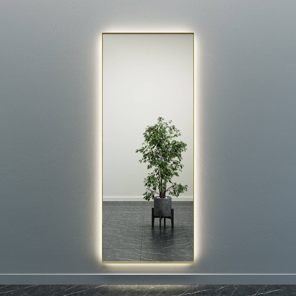 Зеркало в золотой раме с нейтральной подсветкой HALFEO XL Slim LED, 200 x 80 см
