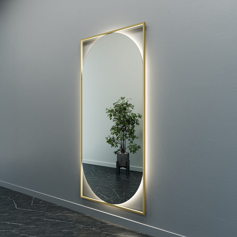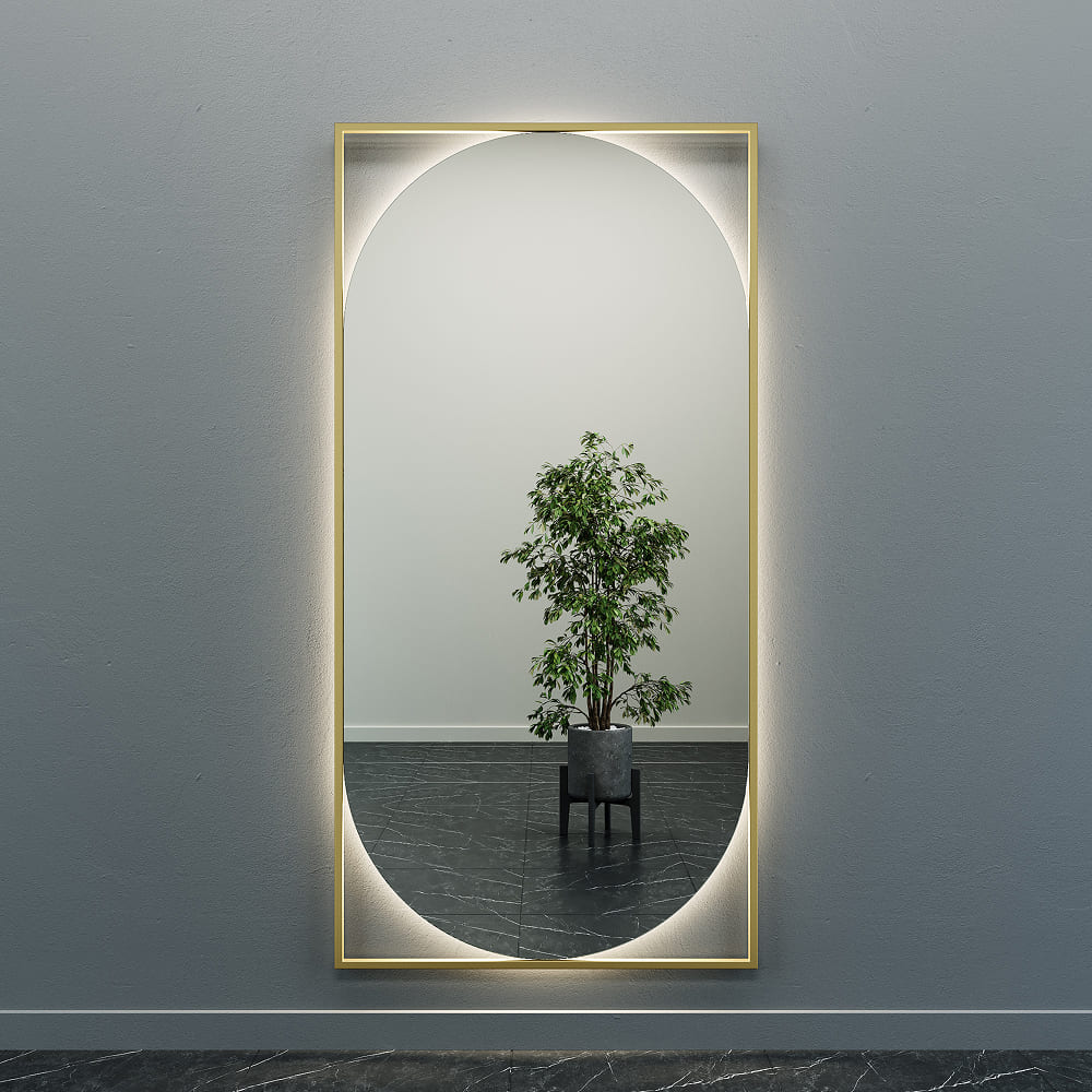 Зеркало в золотой раме с нейтральной подсветкой, KVADEN XL LED, 200 х 100 см