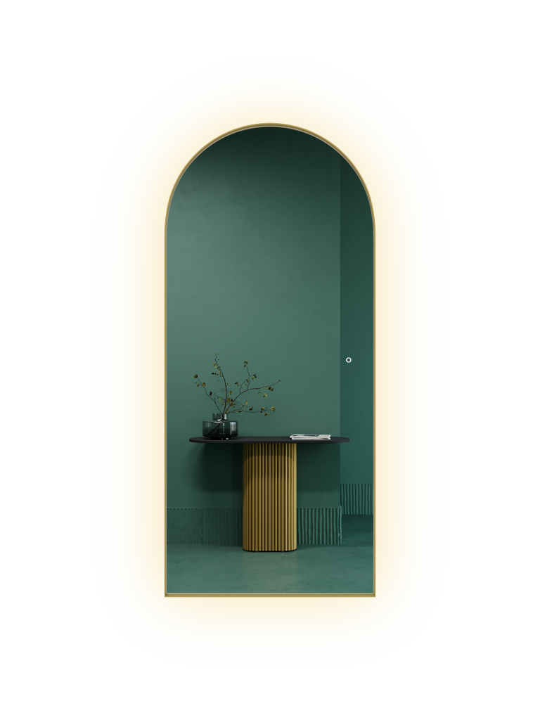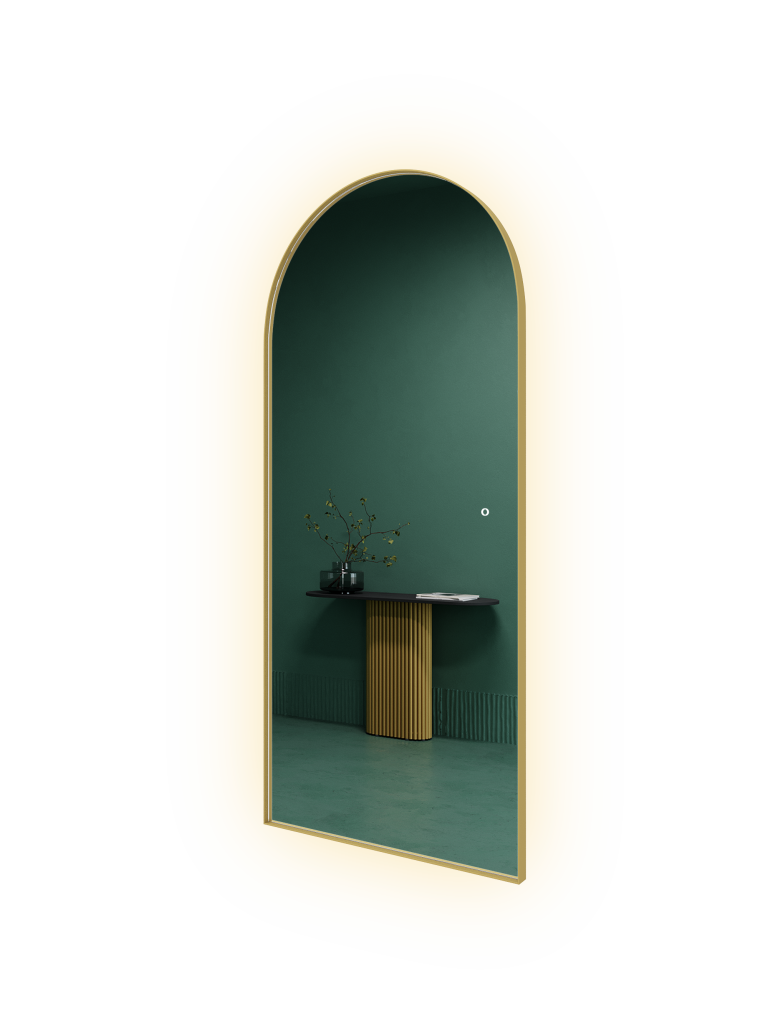 Арочное настенное зеркало в металлической раме с подсветкой 3 в 1, ARKIS L LED с сенсорной кнопкой. Среди зеркал в полный рост представленная модель в виде арки пользуется особой популярностью. Толщина зеркального полотна 0.4 см. Сечение профиля рамы 0.4*4 см, тонкая рама. Выступ рамы 1.5 см. Матовая порошковая покраска. На тыльной стороне рамы присутствует металлическая полоса с крепежными элементами. Cветодиодная лента защищена матовым свето-рассеивателем от попадания пыли и влаги и закреплена на полосе из металла. Подсветка 3 в 1 позволяет регулировать температуру и яркость света. Меняйте цвет одним касанием, а яркость — удержанием кнопки. Все выбранные вами настройки зеркало сохранит автоматически.