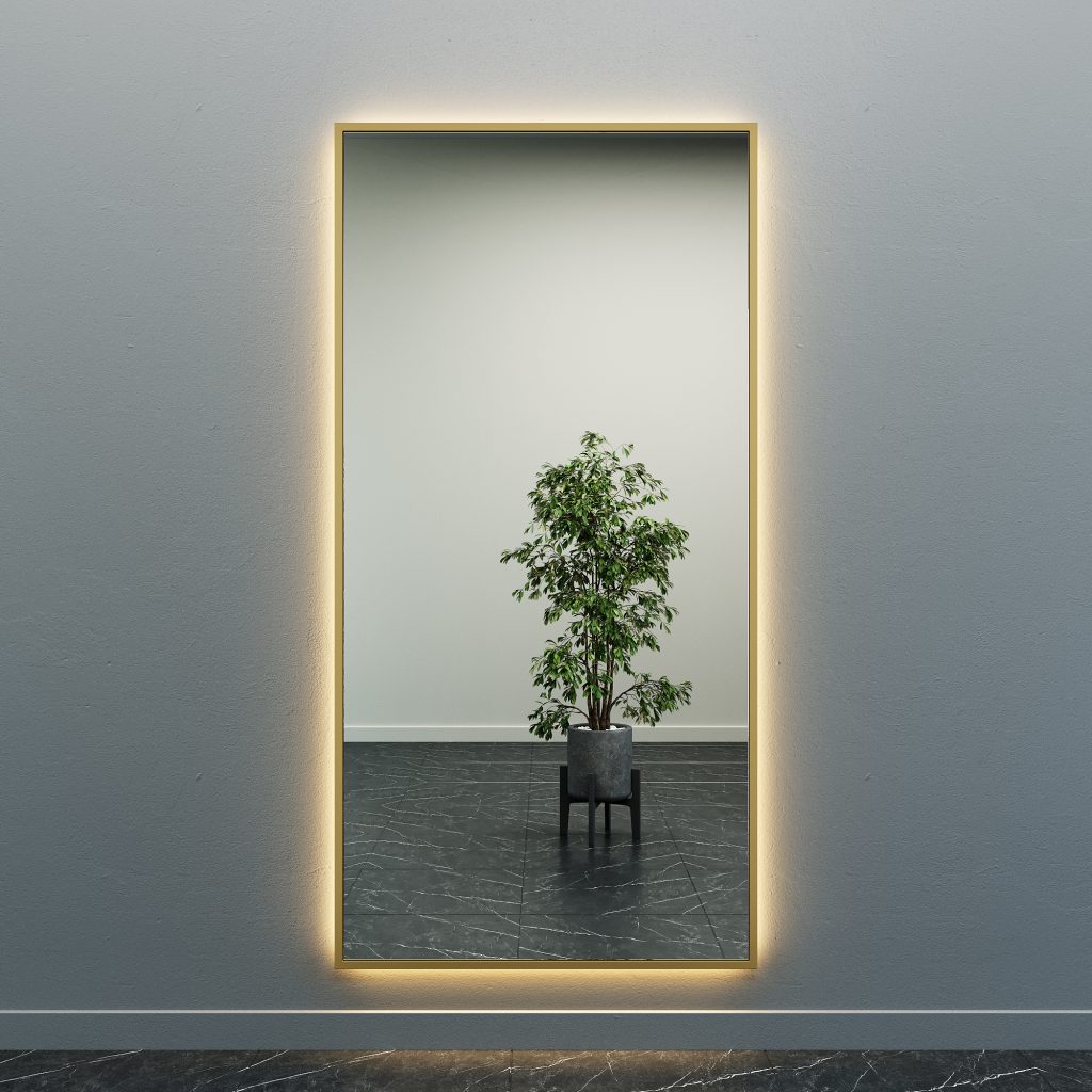 Зеркало в золотой раме с теплой подсветкой HALFEO XL LED, 200 x 100 см