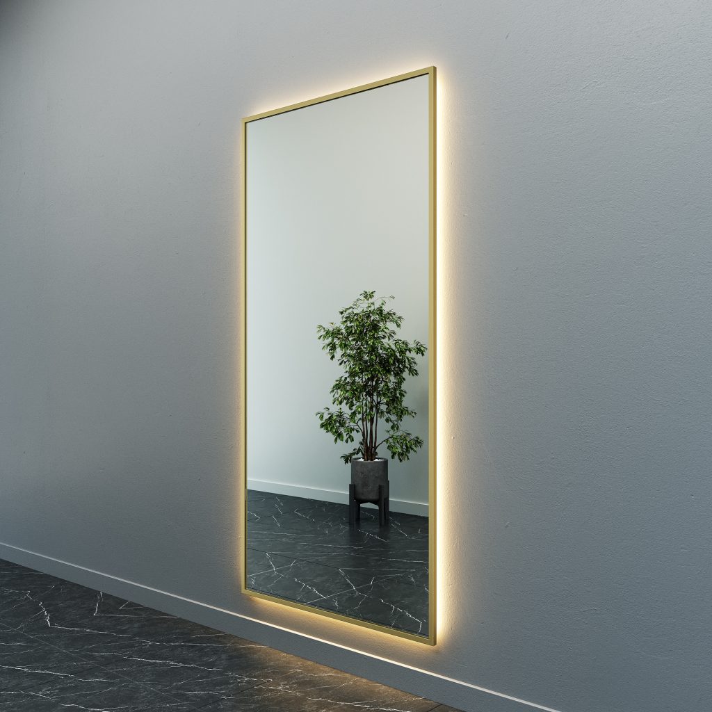 - Зеркало в золотой раме с теплой подсветкой HALFEO XL LED, 200 x 100 см