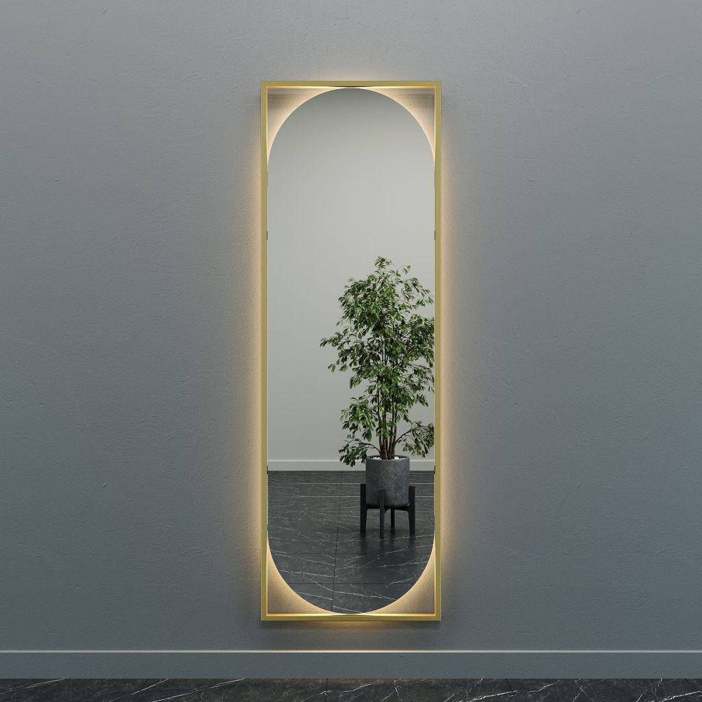 - Зеркало в золотой раме с теплой подсветкой, KVADEN L LED, 180 х 60 см