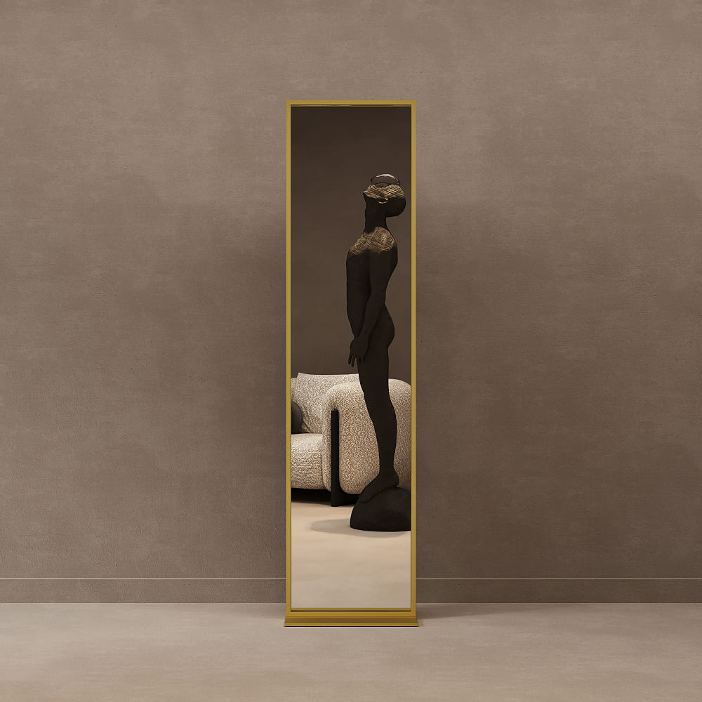 Зеркало во весь рост ZELISO в прямоугольной раме на ножке – это элегантное и практичное решение для дома или коммерческого пространства. Его лаконичный дизайн с эффектом утопленного зеркала придает интерьеру изысканность и визуальную глубину. Благодаря универсальной стилистике зеркало органично впишется в прихожую, спальню или гостиную, а также станет функциональным элементом в магазинах, салонах и шоурумах, заменяя сразу несколько зеркал.