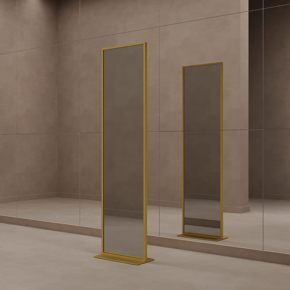 Зеркало во весь рост ZELISO в прямоугольной раме на ножке – это элегантное и практичное решение для дома или коммерческого пространства. Его лаконичный дизайн с эффектом утопленного зеркала придает интерьеру изысканность и визуальную глубину. Благодаря универсальной стилистике зеркало органично впишется в прихожую, спальню или гостиную, а также станет функциональным элементом в магазинах, салонах и шоурумах, заменяя сразу несколько зеркал.