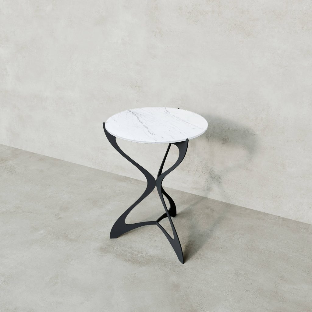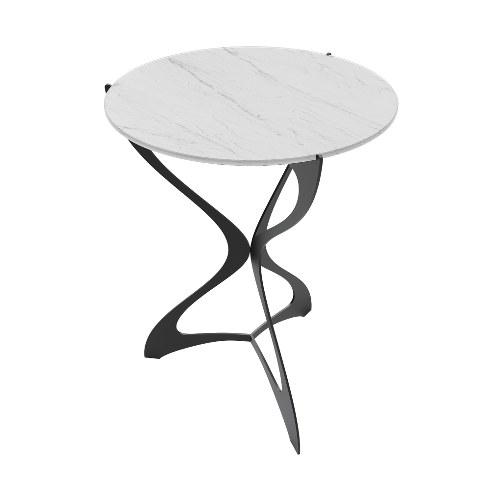 Журнальный стол SELMUS D40 см, белый мрамор/черный