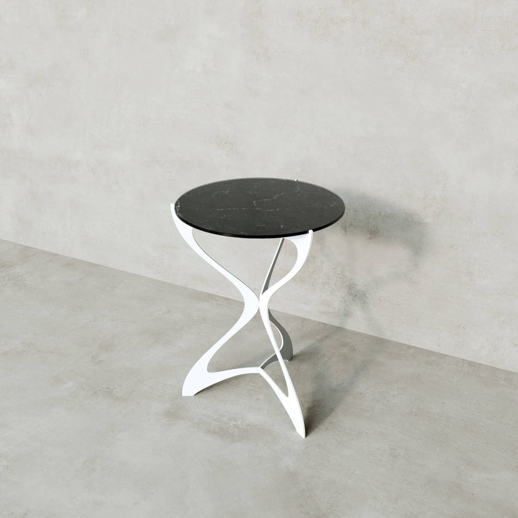Журнальный стол SELMUS D40 см, темный мрамор/белый