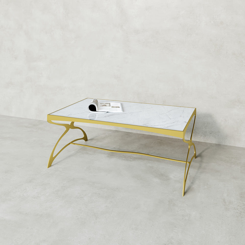Журнальный стол ZINGEROSO Glass 102 х 62 см, белый мрамор/золотой