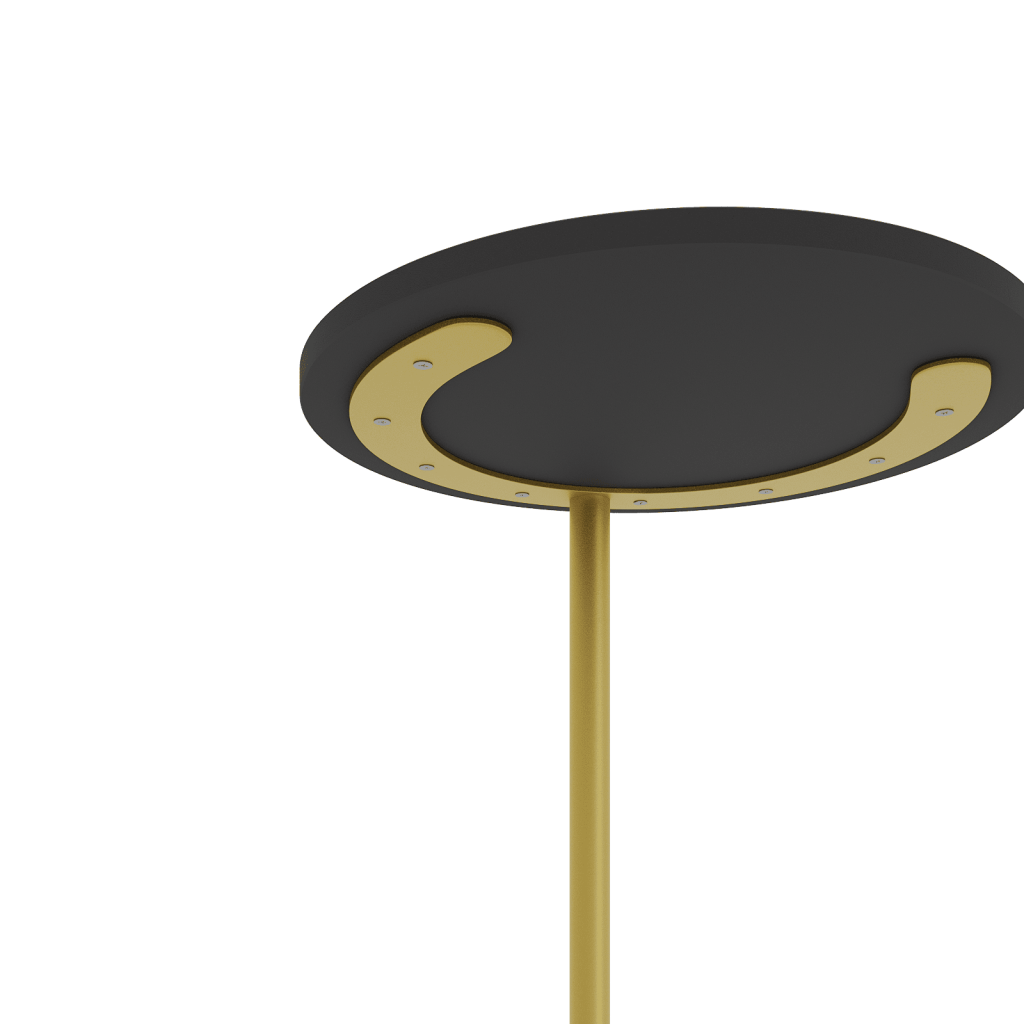 Дизайнерский металлический столик HORSIX. Изготовлен из металла и дерева. Нижняя платформа зайдёт под любой диван или кровать. Столик изготавливаются в 9 стандартных комбинациях цвета: нижняя часть – золотой, чёрный и белый, столешница – орех, белый и чёрный. Небольшие размеры и лаконичный дизайн позволят разместить его в любом уголке вашего дома. Вы можете использовать его как маленький столик к дивану для завтрака, или как прикроватную тумбу возле кровати для книг и других мелочей.