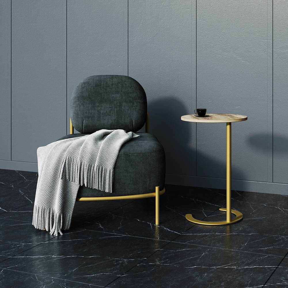 Дизайнерский металлический столик HORSIX. Изготовлен из металла и дерева. Нижняя платформа зайдёт под любой диван или кровать. Столик изготавливаются в 9 стандартных комбинациях цвета: нижняя часть – золотой, чёрный и белый, столешница – орех, белый и чёрный. Небольшие размеры и лаконичный дизайн позволят разместить его в любом уголке вашего дома. Вы можете использовать его как маленький столик к дивану для завтрака, или как прикроватную тумбу возле кровати для книг и других мелочей.