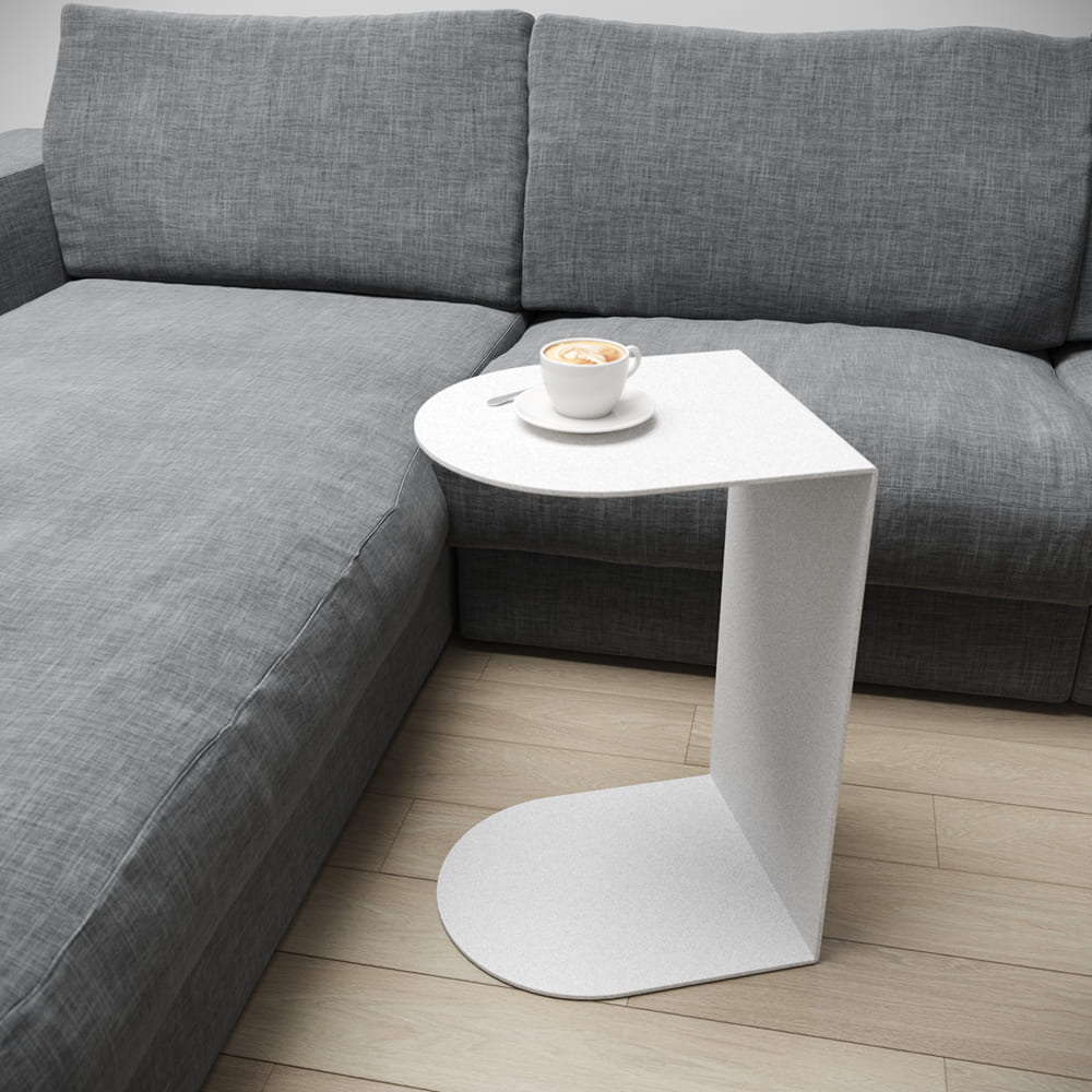 Дизайнерский металлический столик EVULO. Изготовлен полностью из металла. Нижняя платформа толщиной 0.6 см зайдёт под любой диван или кровать. Столик изготавливаются в 3 стандартных цветах – золотой, чёрный и белый. Небольшие размеры и лаконичный дизайн позволят разместить его в любом уголке вашего дома. Вы можете использовать его как маленький столик к дивану для завтрака, или как прикроватную тумбу возле кровати для книг и других мелочей.