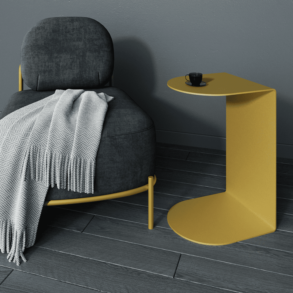 Дизайнерский металлический столик EVULO. Изготовлен полностью из металла. Нижняя платформа толщиной 0.6 см зайдёт под любой диван или кровать. Столик изготавливаются в 3 стандартных цветах – золотой, чёрный и белый. Небольшие размеры и лаконичный дизайн позволят разместить его в любом уголке вашего дома. Вы можете использовать его как маленький столик к дивану для завтрака, или как прикроватную тумбу возле кровати для книг и других мелочей.