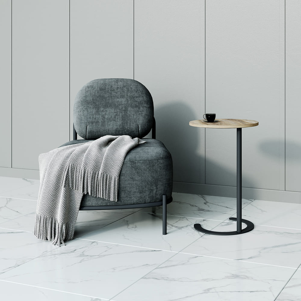Дизайнерский металлический столик HORSIX. Изготовлен из металла и дерева. Нижняя платформа зайдёт под любой диван или кровать. Столик изготавливаются в 9 стандартных комбинациях цвета: нижняя часть – золотой, чёрный и белый, столешница – орех, белый и чёрный. Небольшие размеры и лаконичный дизайн позволят разместить его в любом уголке вашего дома. Вы можете использовать его как маленький столик к дивану для завтрака, или как прикроватную тумбу возле кровати для книг и других мелочей.