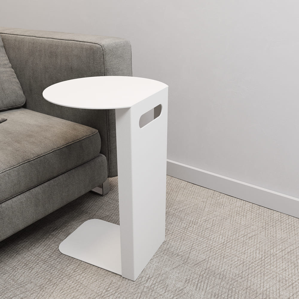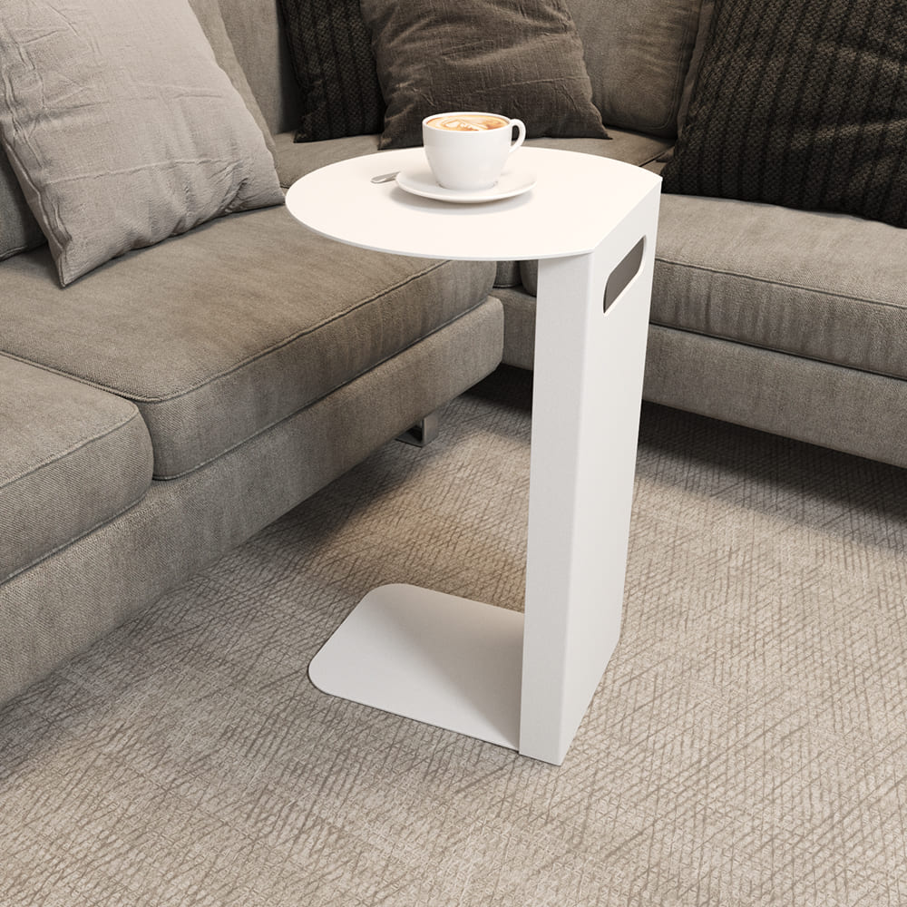Дизайнерский металлический столик KNISO. Изготовлен полностью из металла. Нижняя платформа толщиной 0.6 см зайдёт под любой диван или кровать. Столик изготавливаются в 3 стандартных цветах – золотой, чёрный и белый. Небольшие размеры и лаконичный дизайн позволят разместить его в любом уголке вашего дома. Вы можете использовать его как маленький столик к дивану для завтрака, или как прикроватную тумбу возле кровати для книг и других мелочей.