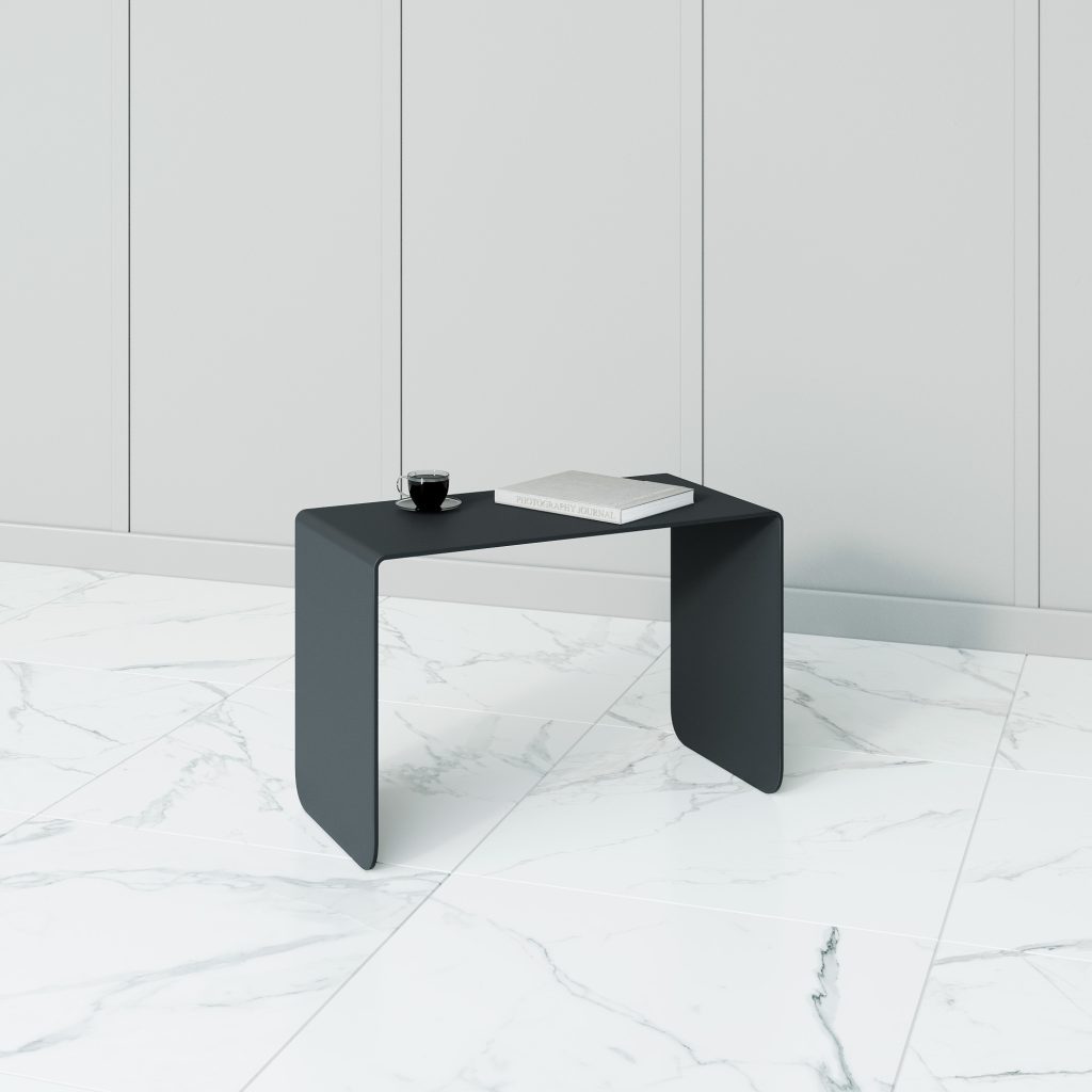 Дизайнерский металлический столик RILONI. Изготовлен полностью из металла. Нижняя платформа толщиной 0.6 см зайдёт под любой диван или кровать. Столик изготавливаются в 3 стандартных цветах – золотой, чёрный и белый. Небольшие размеры и лаконичный дизайн позволят разместить его в любом уголке вашего дома. Вы можете использовать его как маленький столик к дивану для завтрака, или как прикроватную тумбу возле кровати для книг и других мелочей.