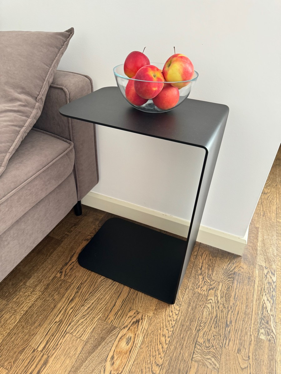 Дизайнерский металлический столик RILONI. Изготовлен полностью из металла. Нижняя платформа толщиной 0.6 см зайдёт под любой диван или кровать. Столик изготавливаются в 3 стандартных цветах – золотой, чёрный и белый. Небольшие размеры и лаконичный дизайн позволят разместить его в любом уголке вашего дома. Вы можете использовать его как маленький столик к дивану для завтрака, или как прикроватную тумбу возле кровати для книг и других мелочей.
