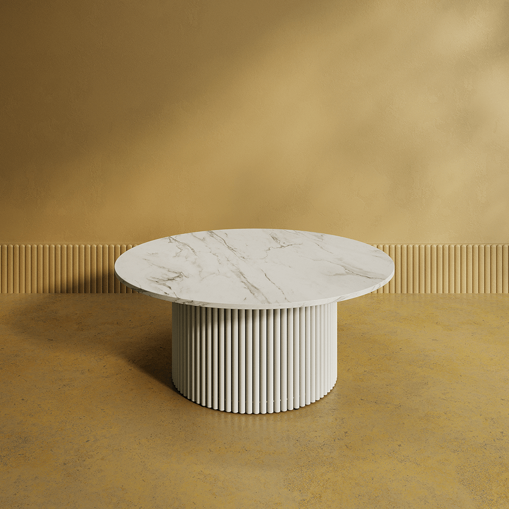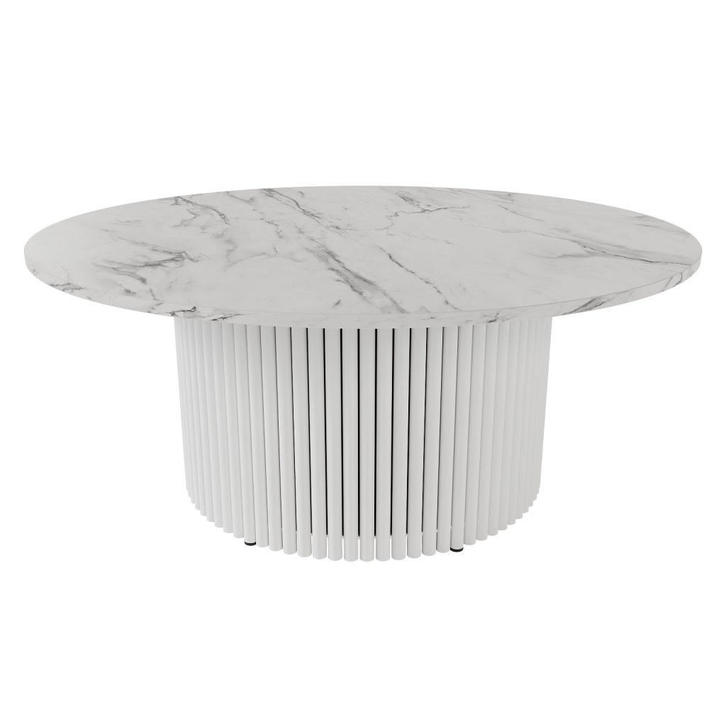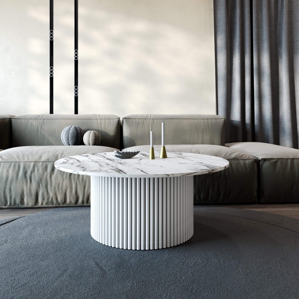 Журнальный столик TRUBIS Wood M D100 см, белый мрамор/белый