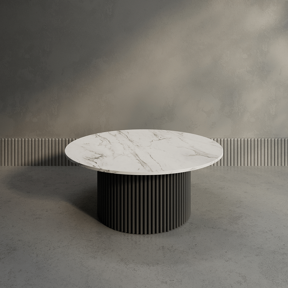 Журнальный столик TRUBIS Wood M D100 см, белый мрамор/черный