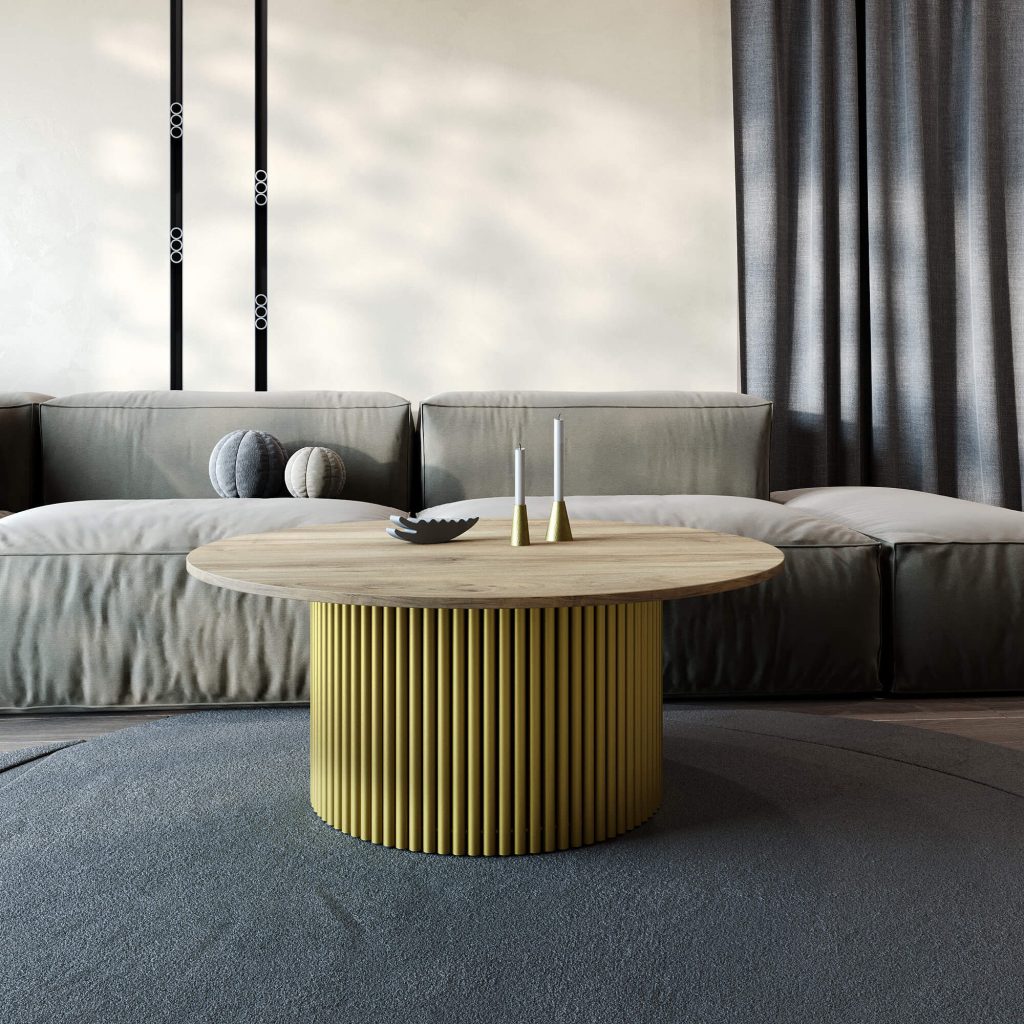 - Журнальный столик TRUBIS Wood M D100 см, орех/золотой