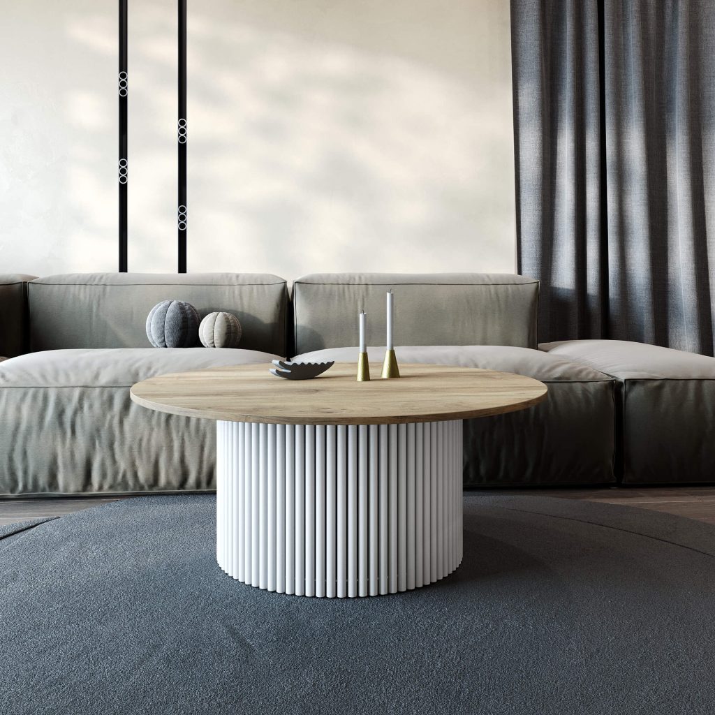 Журнальный столик TRUBIS Wood M D100 см, орех\белый