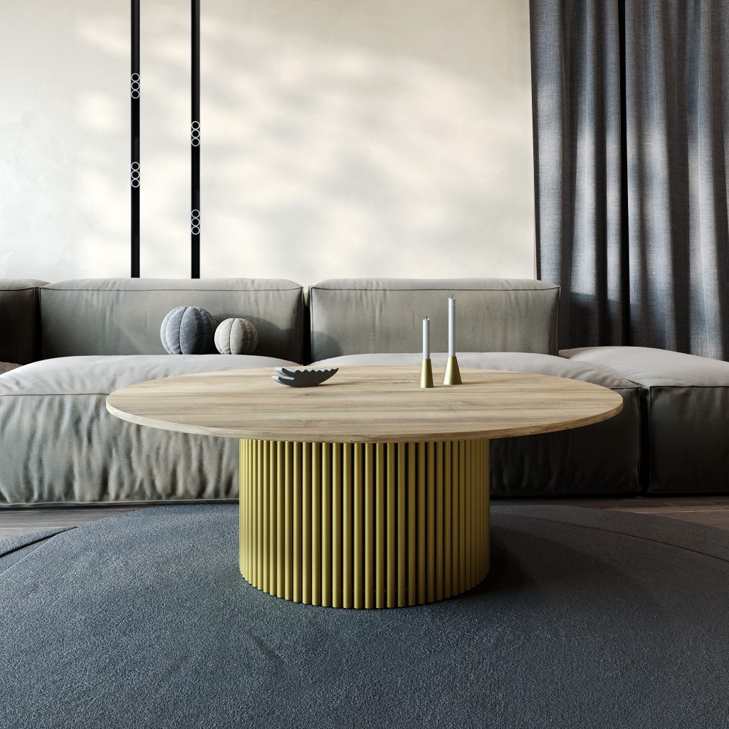 - Журнальный столик TRUBIS Wood M D120 см, орех/золотой