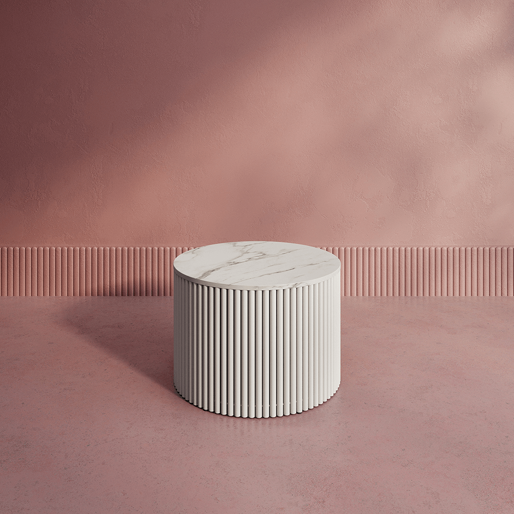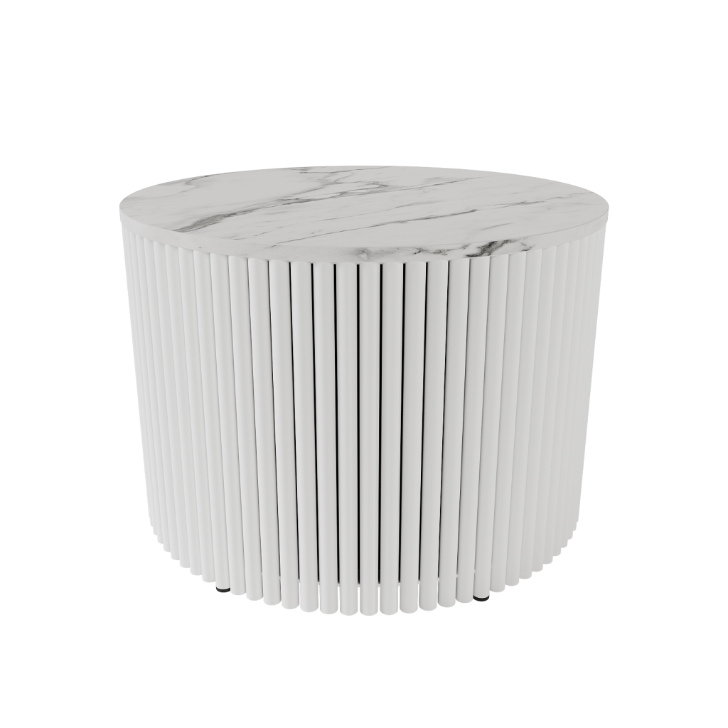 - Журнальный столик TRUBIS Wood M D60 см, белый мрамор/белый