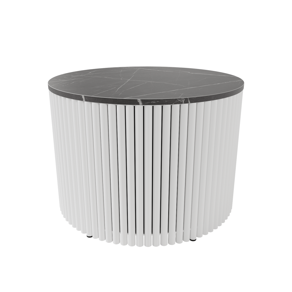 Журнальный столик TRUBIS Wood M D60 см, темный мрамор/белый