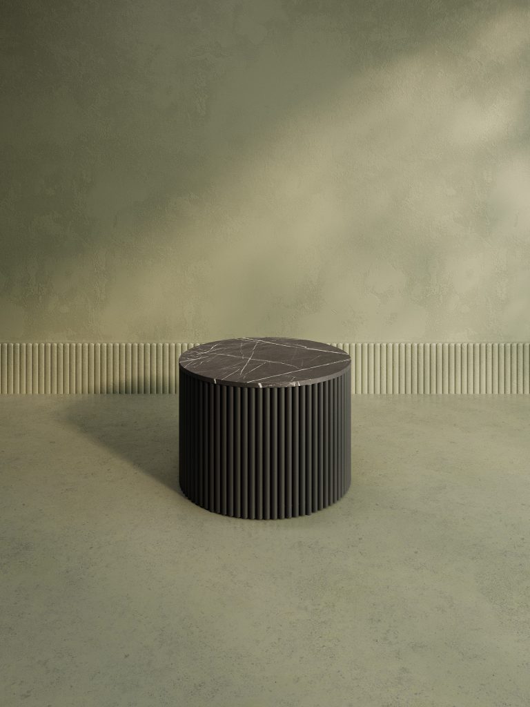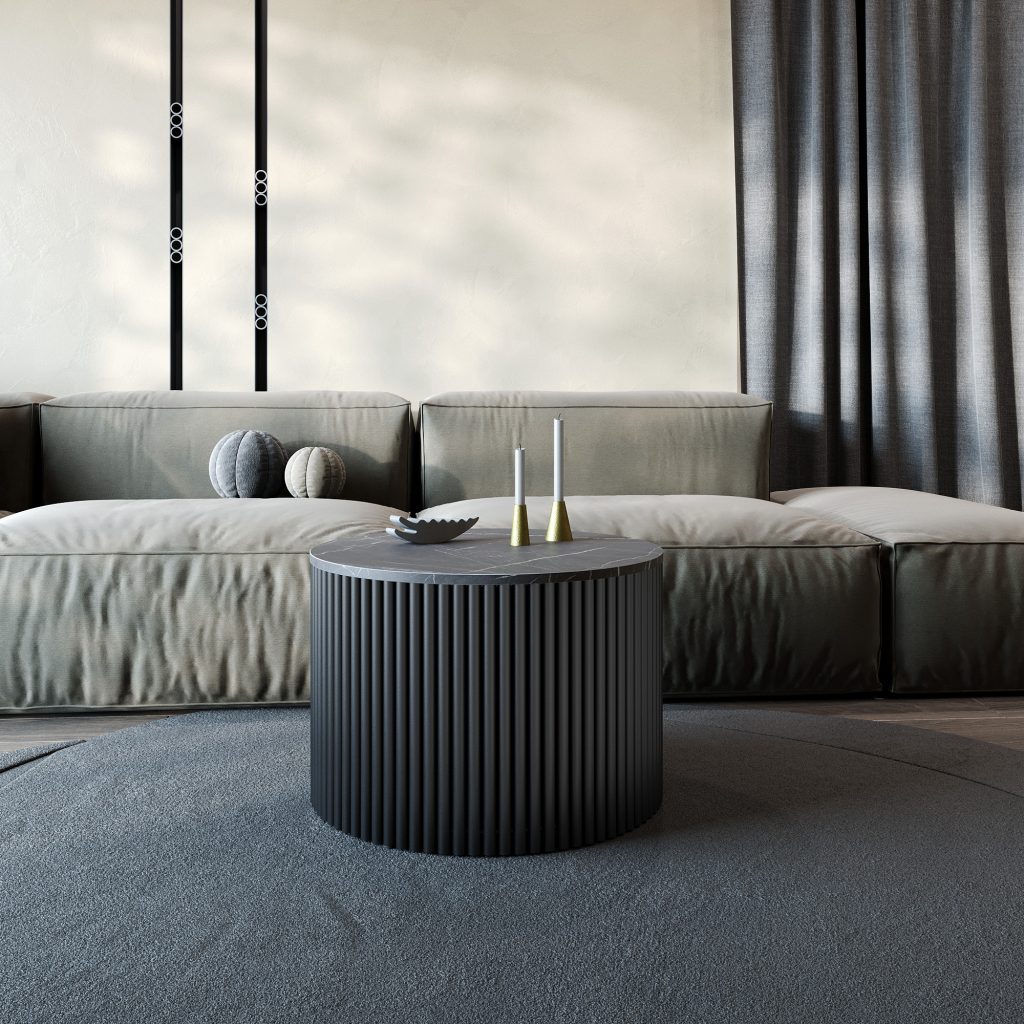 - Журнальный столик TRUBIS Wood M D60 см, темный мрамор/черный