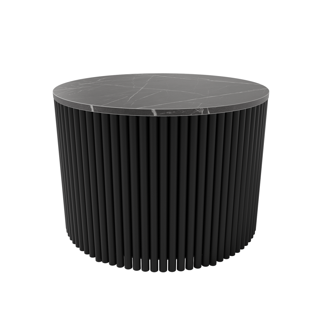 Журнальный столик TRUBIS Wood M D60 см, темный мрамор/черный