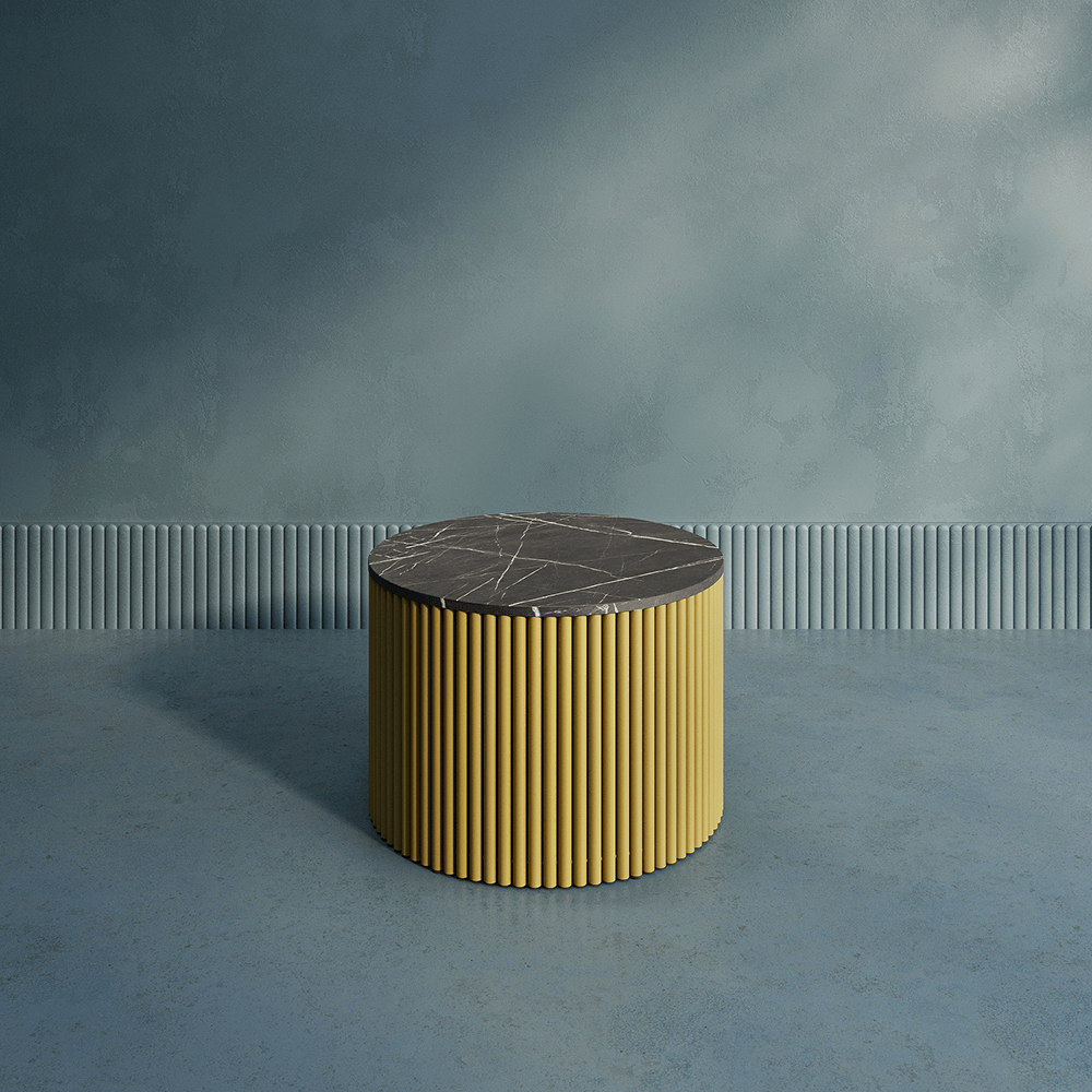 - Журнальный столик TRUBIS Wood M D60 см, темный мрамор/золотой