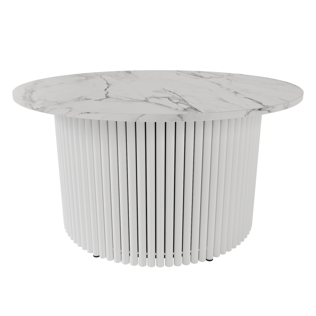 - Журнальный столик TRUBIS Wood M D80 см, белый мрамор/белый