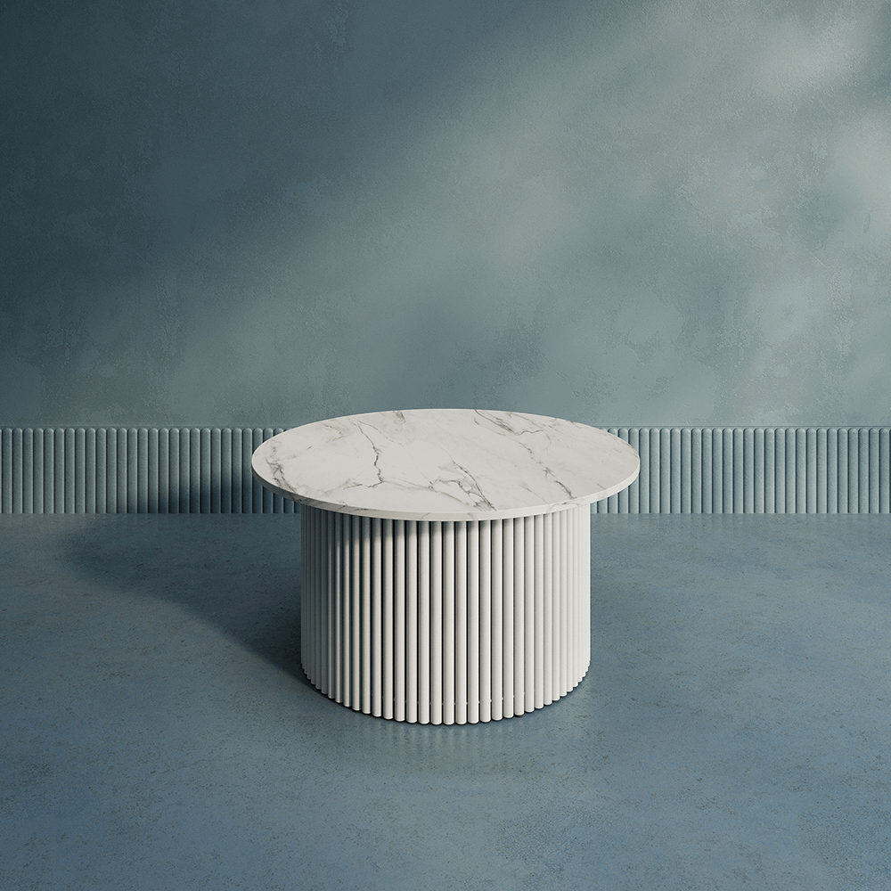Журнальный столик TRUBIS Wood M D80 см, белый мрамор/белый