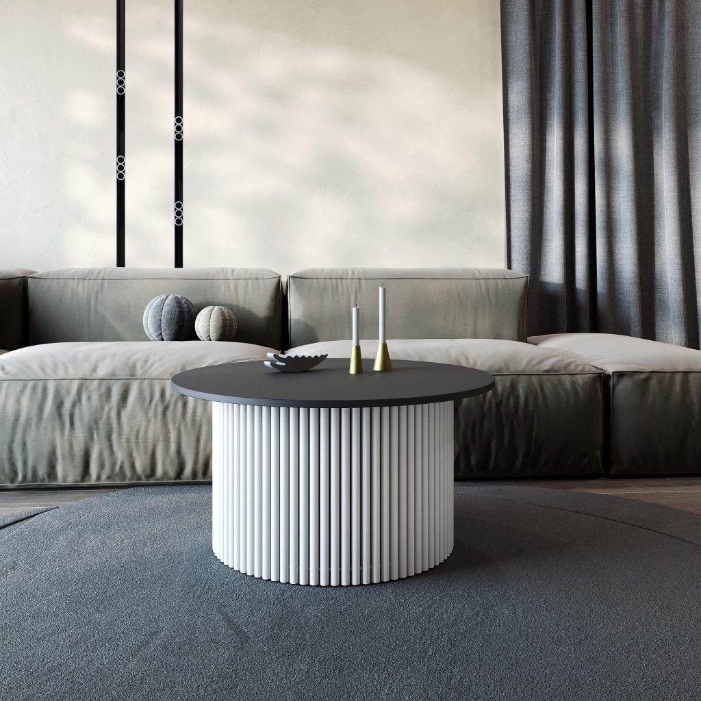 - Журнальный столик TRUBIS Wood M D80 см, черный/белый