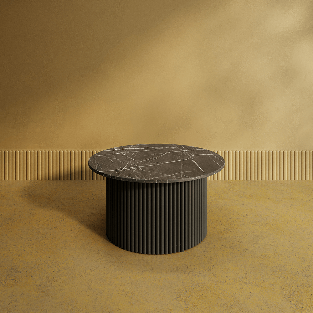 Журнальный столик TRUBIS Wood M D80 см, темный мрамор/черный