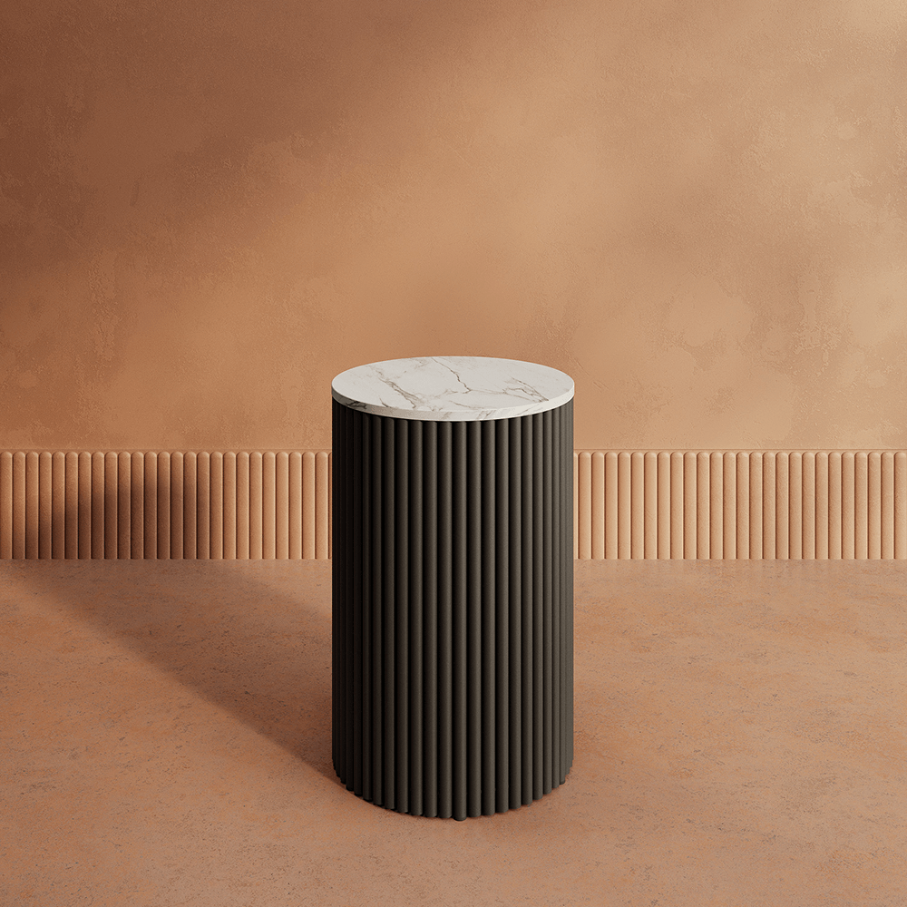 Журнальный столик TRUBIS Wood S D40 см, белый мрамор/черный