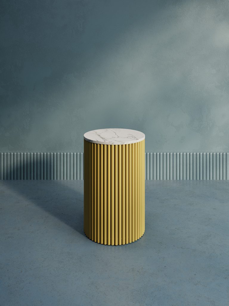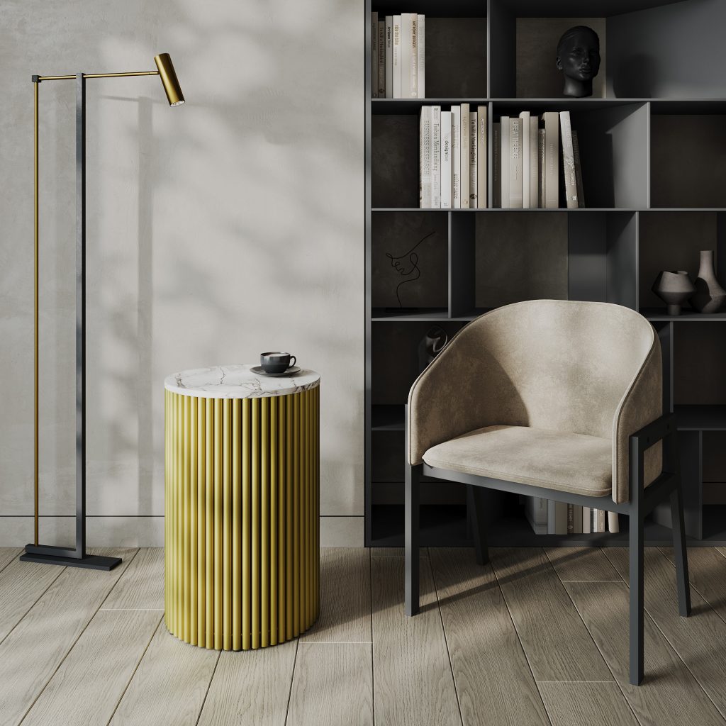 - Журнальный столик TRUBIS Wood S D40 см, белый мрамор/золотой