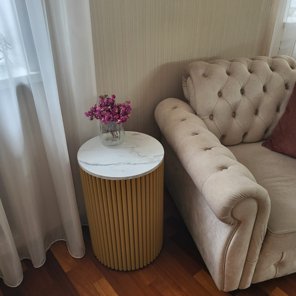 - Журнальный столик TRUBIS Wood S D40 см, орех/золотой