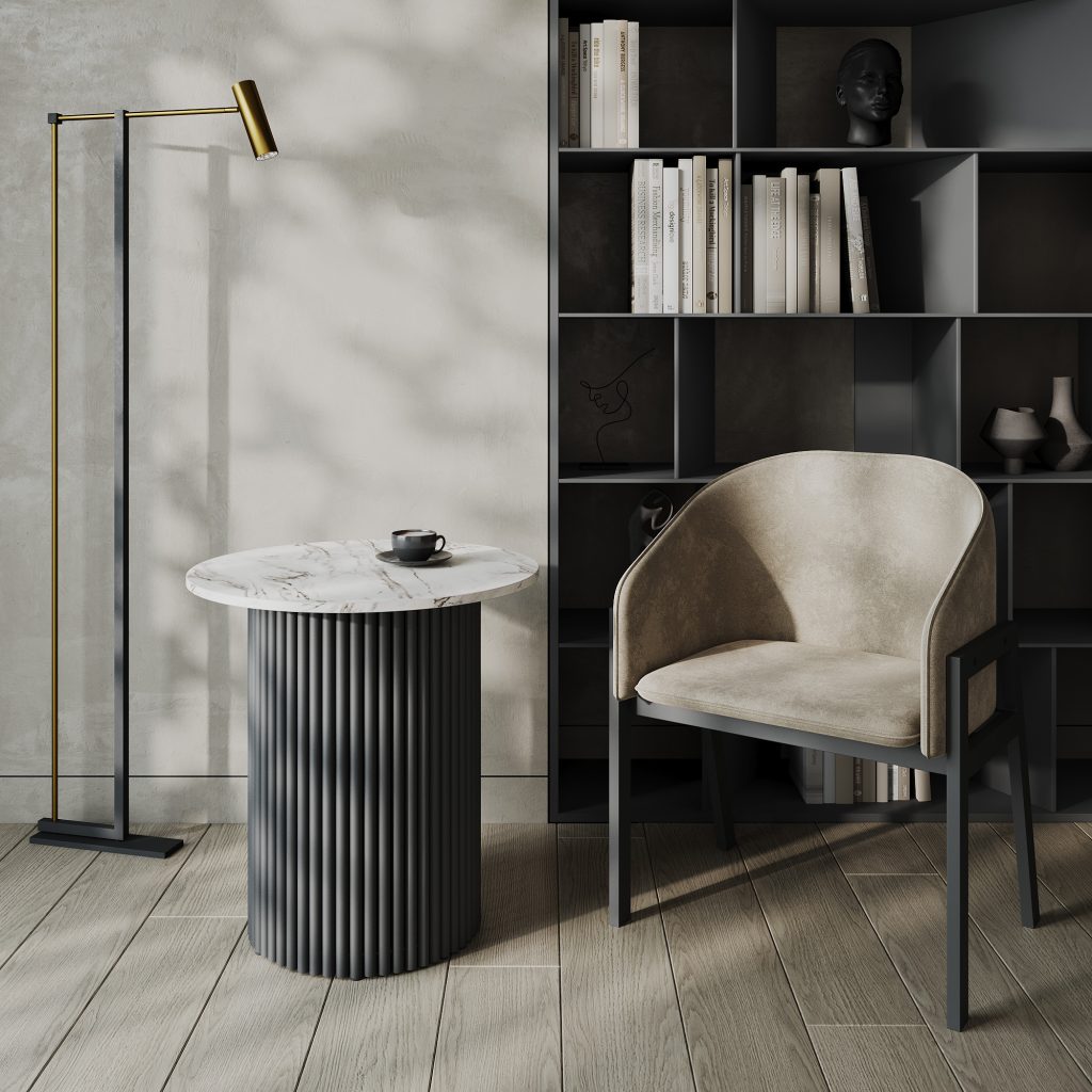 - Журнальный столик TRUBIS Wood S D60 см, белый мрамор/черный