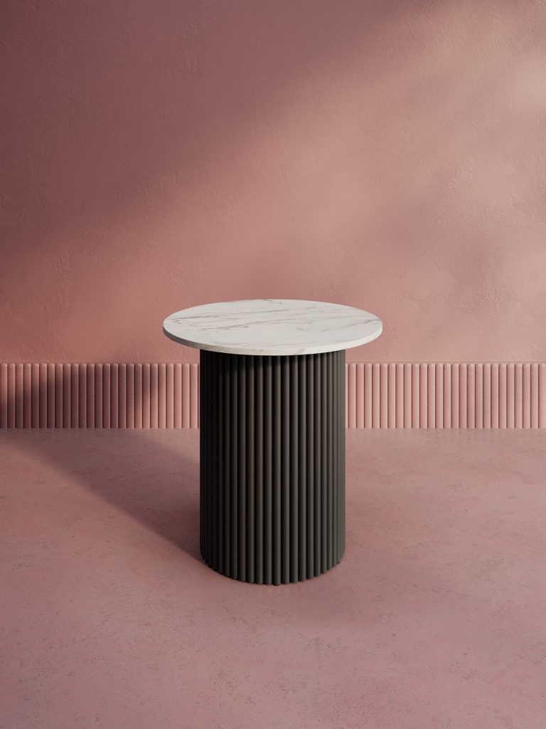 Журнальный столик TRUBIS Wood S D60 см, белый мрамор/черный